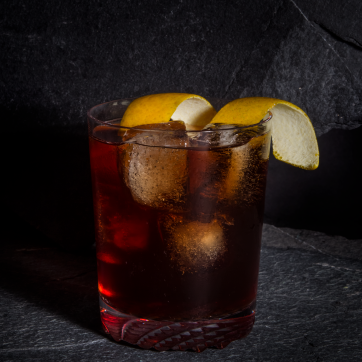 -Con un agitador o cuchara revuelve hasta que aparezca condensación en la superficie del vaso, cambia de vaso a uno corto y decora con un twist de naranja.
