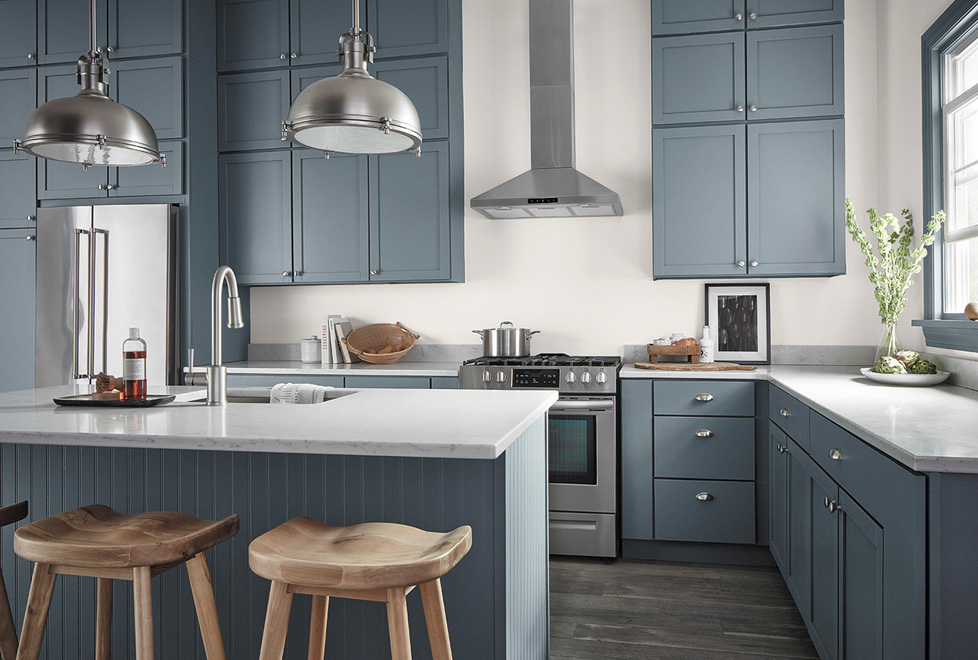 Cuando queremos remodelar algún espacio, optar por un cambio de color o poner una gama de tonos contrastantes es una gran alternativa. En las cocinas puedes aplicar el cambio en distintos elementos, como gabinetes, muros, en el mobiliario de apoyo (bancos, barras o taburetes) e incluso en los electrodomésticos.