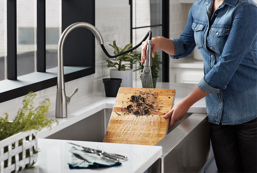 Es el lugar que tal vez más se desgasta; por eso requiere mucho mantenimiento y cuidado diario para tenerlo en el mejor estado. Para ello, opta por tarjas con materiales inoxidables, que eviten la proliferación de bacterias, como las de Kohler, y faciliten el proceso de limpieza, especialmente en la zona del fregadero.