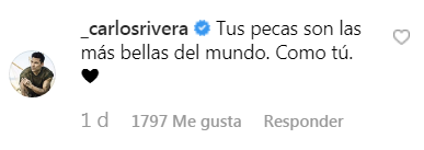 “Tus pecas son las más bellas del mundo, como tú”, escribió el actor y cantante. Su respuesta tiene dos mil “Me gusta” y los seguidores de ambos reconocieron que de ese apoyo a su pareja.