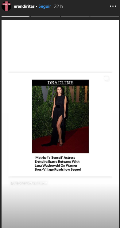 A través de sus historias de Instagram, la actriz compartió la publicación en la que el medio estadunidense Deadline confirma su participación en la cuarta entrega de Matrix; además, en su cuenta de Twitter agradeció a sus seguidores por loe mensajes de cariño.