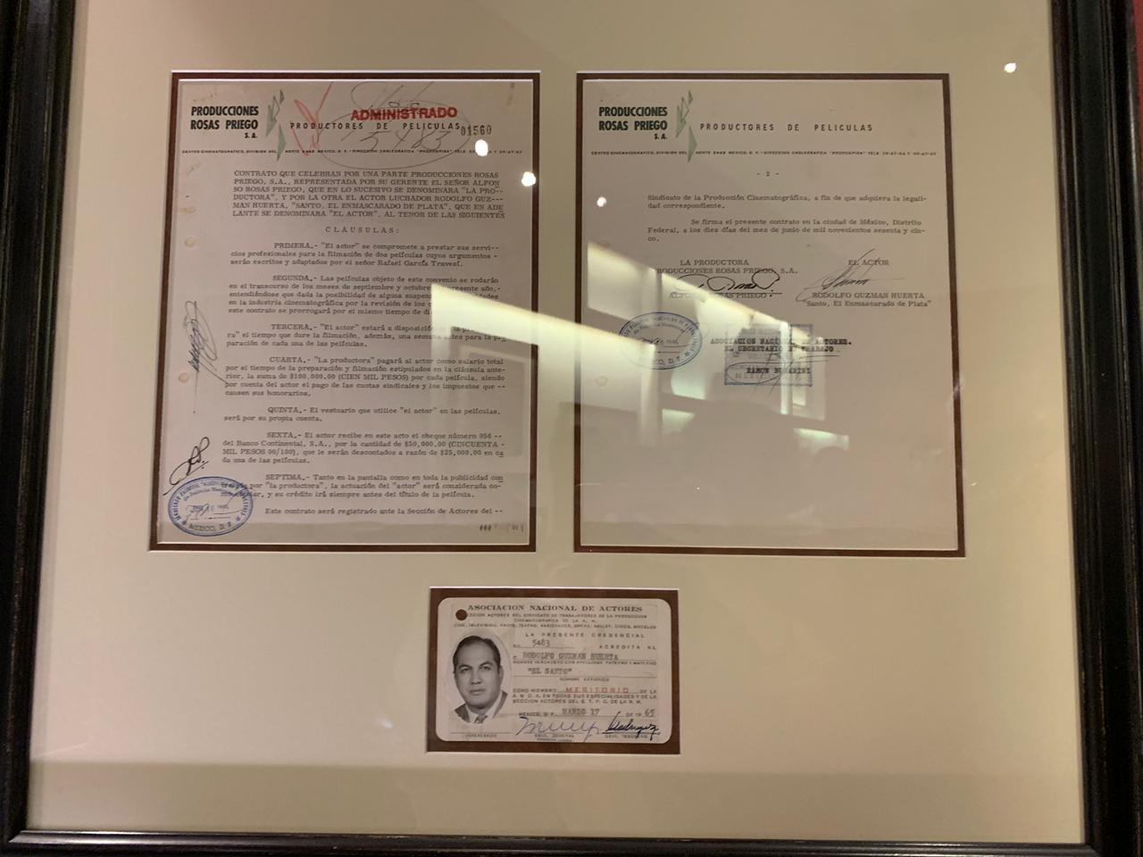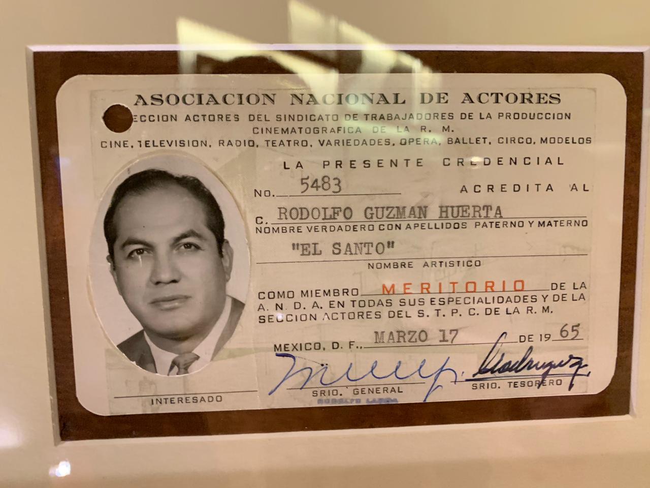 La exposición curada por Eugenio Caballero alberga esta credencial de Rodolfo Guzmán Huerta que revela cómo lucía el luchador sin su emblemática máscara. Fue emitida por la Asociación Nacional de Actores y es de los pocos registros fotográficos con la verdadera identidad de El Santo.