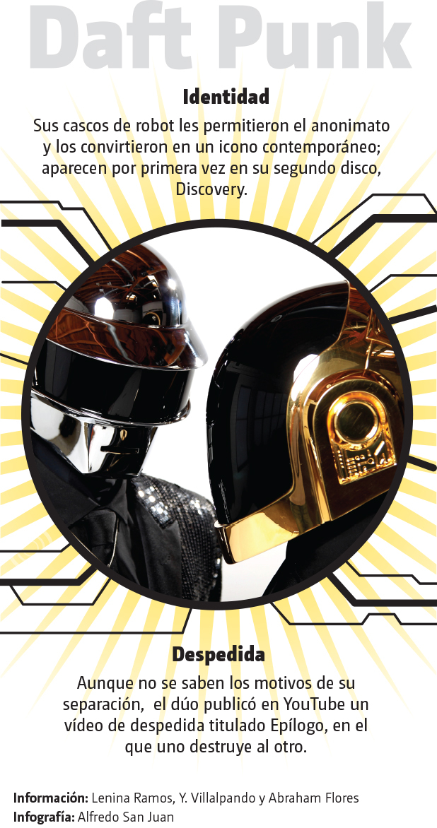 Sin embargo uno de ellos se detiene para que el otro presione un botón de autodestrucción. Daft Punk es uno de los grupos que se ha caracterizado por su identidad visual, sonidos robóticos y por ser inspiración para artistas de todos los géneros.