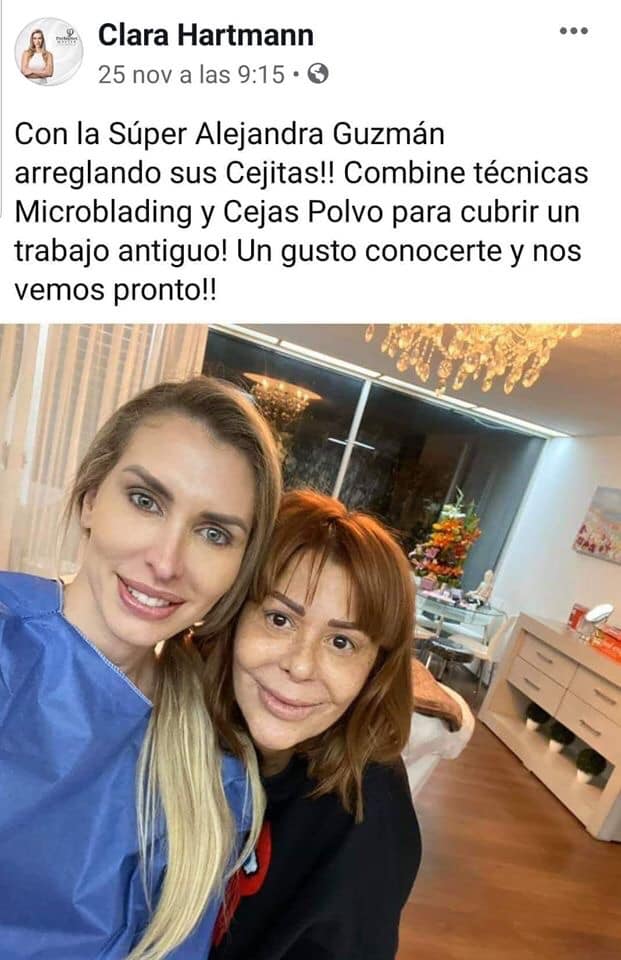 Clara Hartmann, experta en maquillaje permanente y microblading presumió a su clienta Alejandra Guzmán luego de que la intérprete de "Volverte a amar" se sometiera a un tratamiento de microblading y cejas polvo.