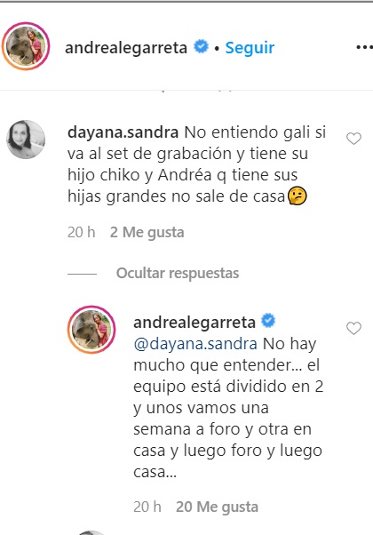 Ante la aclaración, la internauta respondió a Andrea Legarreta de forma apenada.