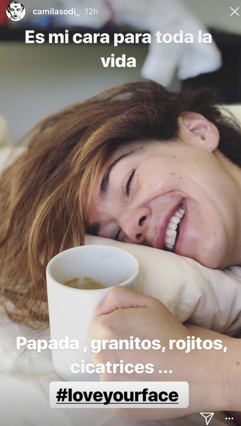 En el pie de foto de la instantánea, escribió "Sin filtro, con granitos, ojo hinchado y recién despertando. Emiliano Berruecos, mi amigo, dice que ponga fotos de la verdadera yo. Ahí les van...".
