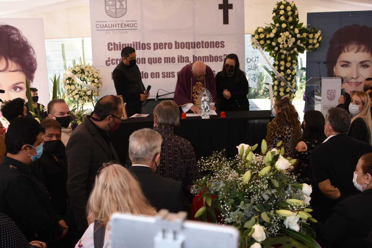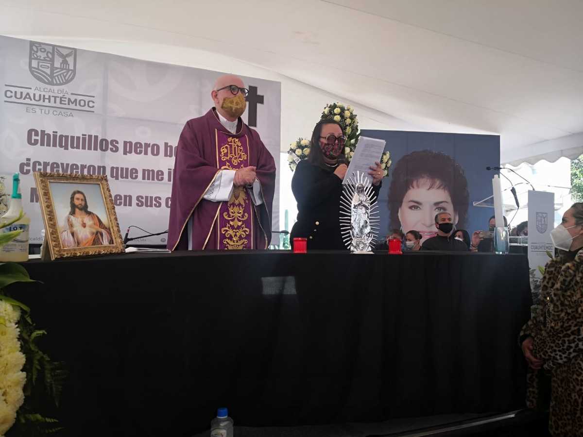 En punto de las 12:20 el padre José de Jesús Salinas inició la celebración eucarística y María Eugenia Plascencia, hija de la actriz, participó leyendo la primera lectura.