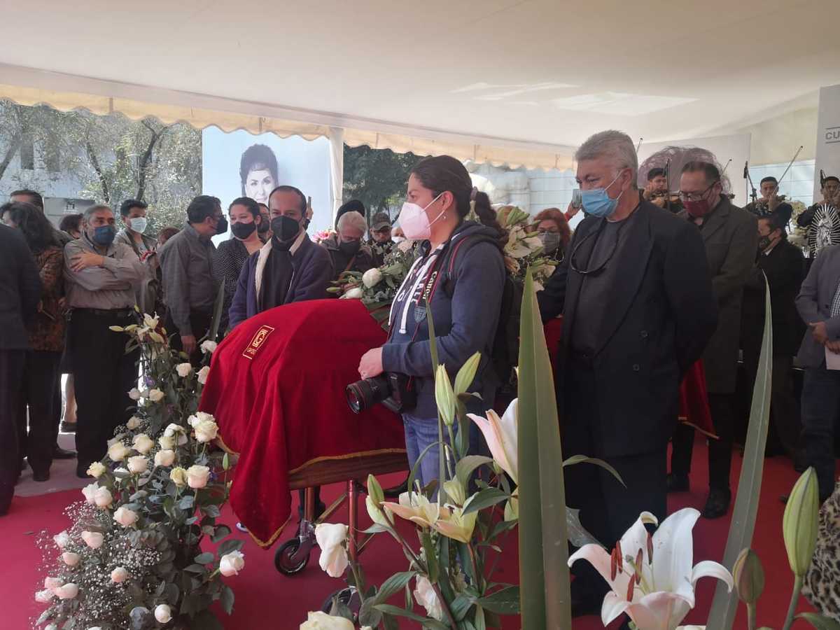 El mariachi "Águila de México" siguió con el "Cómo han pasado los años", mientras las cámaras rodearon el ataúd y familiares que acompañan a la actriz.