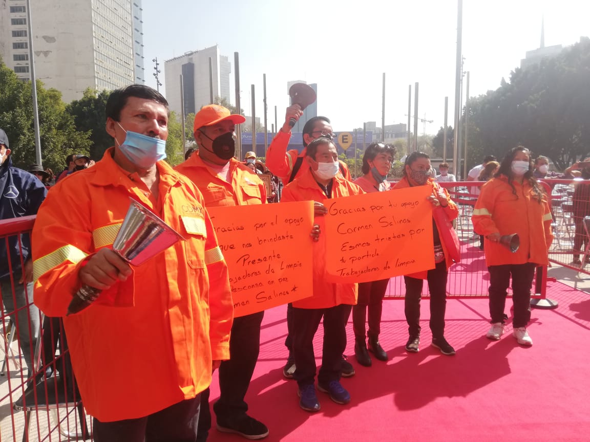 Equipo internacional de Acrobacia de la Ciudad de México y Trabajadores de limpia se sumaron a la despedida a la actriz, en el monumento a la madre.