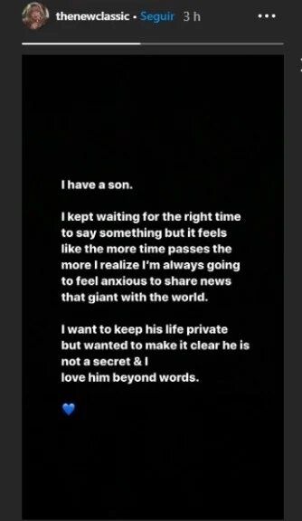 “Tengo un hijo. Seguía esperando el momento adecuado para decir algo, pero parece que cuanto más tiempo pasa, más me doy cuenta de que siempre me sentiré ansiosa por compartir noticias de este tamaño con el mundo”, se lee en el escrito.