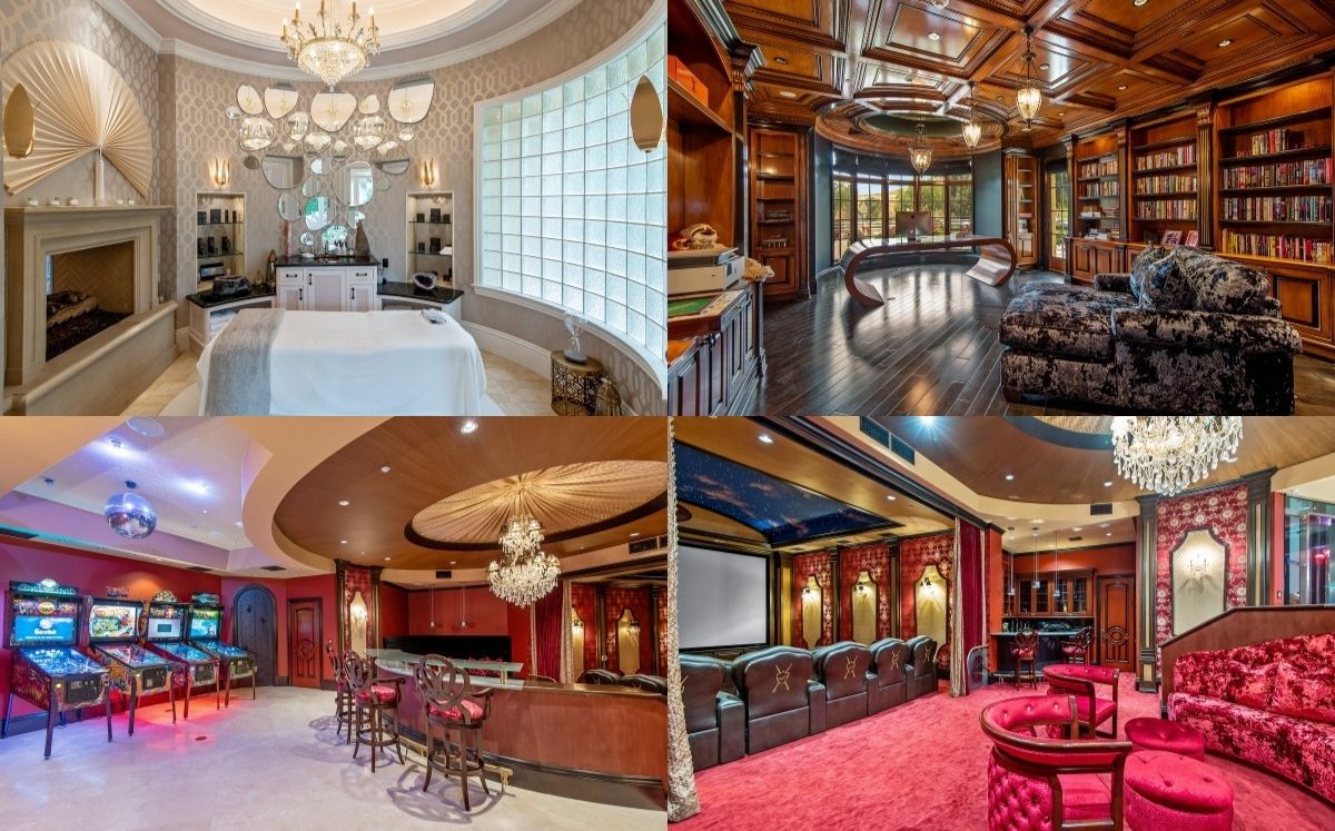 Dentro del edificio principal hay una cocina gourmet, una sala de estar enorme, dos oficinas, un cine, una sala de juegos y hasta un spa. Además, un elevador de cristal une a todas las plantas con la suite principal, que tiene dos baños, dos clósets y acceso directo a un gimnasio de dos pisos con sus propios vestidores, jacuzzi y sauna.