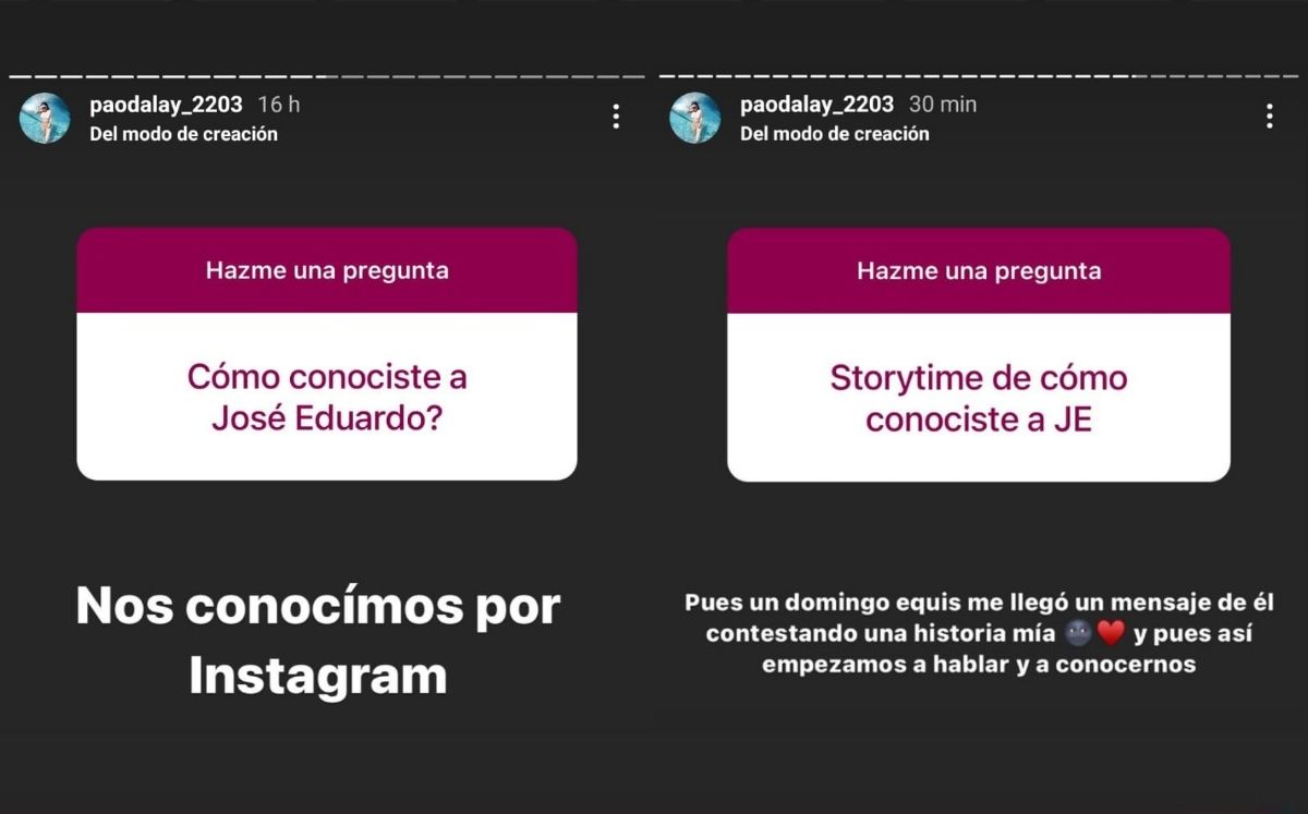 "¿Cómo conociste a José Eduardo?", le cuestionó alguien, a lo que ella respondió clara y concisa: "Nos conocimos por Instagram". En una segunda Storie dio a conocer más detalles al respecto. "Un domingo equis me llegó un mensaje de él contestando una historia mía y pues así empezamos a hablar y a conocernos", escribió.