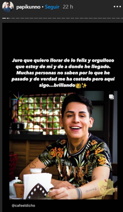 Kunno, quien debido a las criticas que recibió mencionó que dejaría las redes sociales, publicó en Instagram una historia en la que explicó que se sentía feliz por aparecer en el programa.