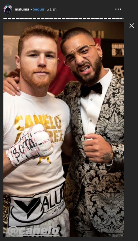 Previo a la pelea de esta noche de Saúl Canelo Álvarez, Maluma compartió en sus historias de Instagram un video en el que se reúne con el boxeador para desearle suerte en la pelea contra Daniel Jacobs.