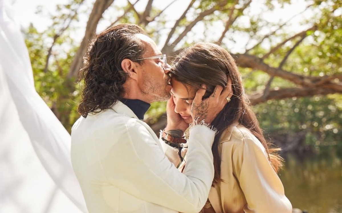 En la tercera foto, Marc Anthony besa la frente de la modelo, mientras con ambas manos sostiene su rostro.