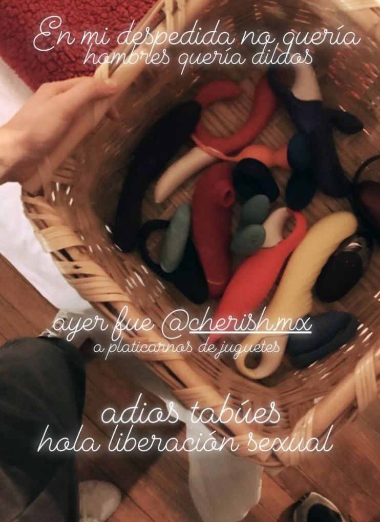 Una noche antes, Dupeyrón y sus amigas realizaron una despedida de soltera a la que llegó una marca especializada en juguetes sexuales: “En mi despedida no quería hombres, quería dildos. Adiós tabúes, hola liberación sexual”, escribió.