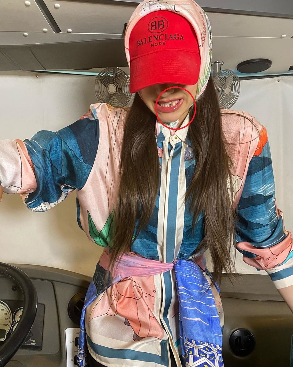 Sin embargo, no fue el vestuario el que llamó la atención de los internautas, pues es muy habitual que la cantante ocupe looks extravagantes, sino lo que mostró en su boca: la falta un diente de la parte inferior.