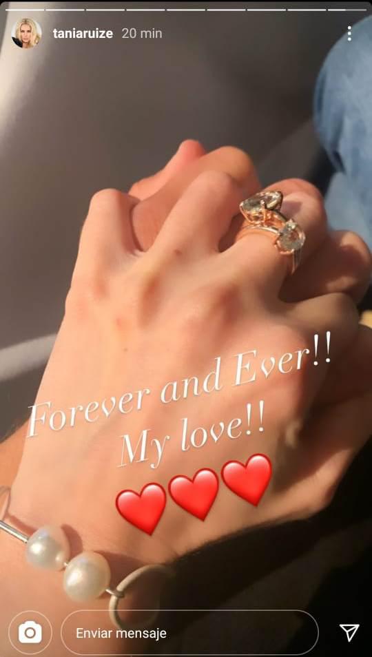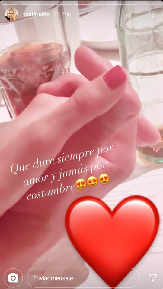 Aunque esta foto no tiene la de extraño, la segunda imagen que subió a sus historias sin duda desató la polémica, ya que se observa las manos de la pareja, sin embargo, se observa que Tania Ruiz usa un lujoso y hermoso anillo.