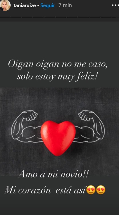 “Oigan, oigan, no me caso, sólo estoy muy feliz. ¡Amo a mi novio!, mi corazón está así”, el mensaje fue acompañado con algunos emojis.