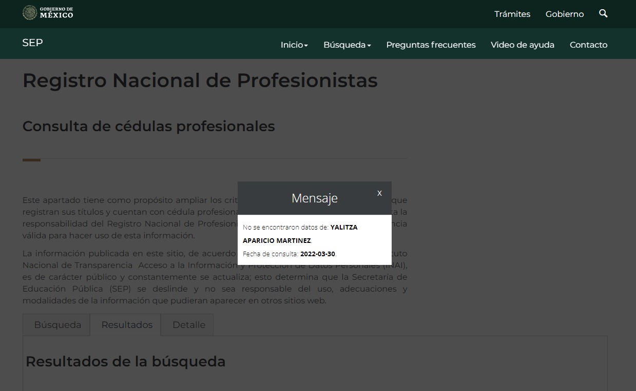 “Nosotros fuimos a buscar el registro. La SEP es en donde se comprueba, pensamos que tal vez su nombre era incorrecto y nos dimos a la tarea de sacar su acta de nacimiento…. A lo mejor no le dio tiempo de sacar sus papeles. Es importante que lo aclares Aparicio…”, informó.