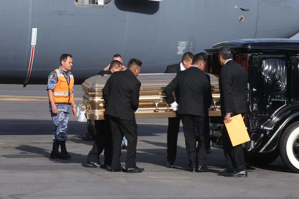 En la aeronave viajan los hijos del músico, José Joel y Marysol Sosa, además del presidente de la Comisión de Cultura y Cinematografía de la Cámara de Diputados, Sergio Mayer.