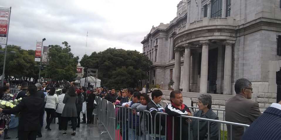 Con rosas, fotografías y cantos, los seguidores del cantante ya esperan a las afueras de Bellas Artes para poder ingresar al recinto que abrirá sus puertas al público a partir de las 10:00 am.