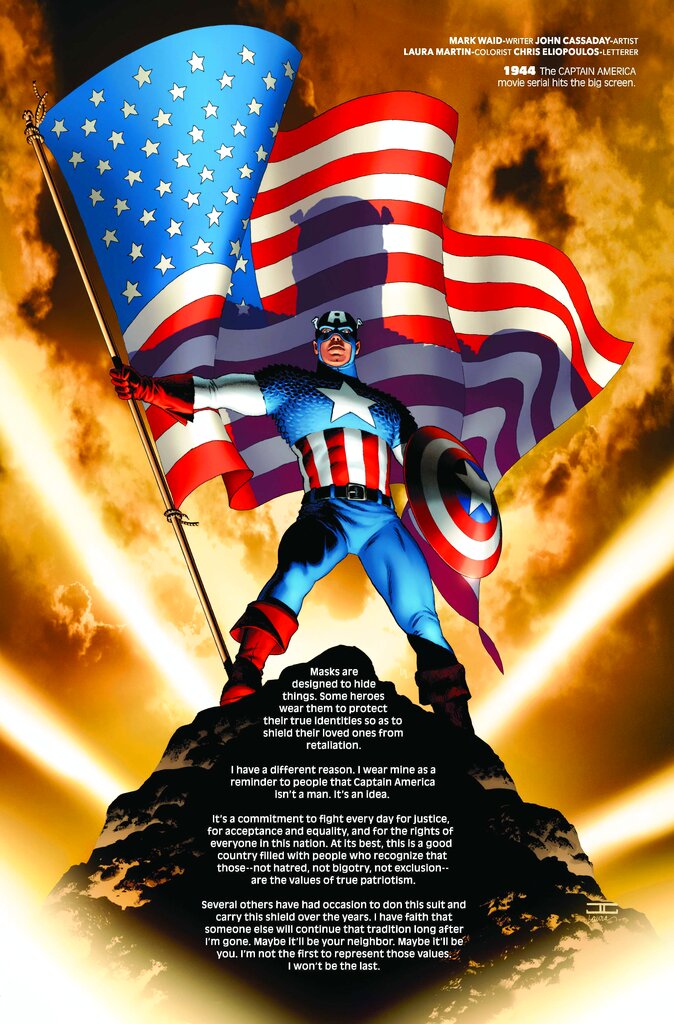 El martes surgió una controversia después de que Hollywood Reporter publicó una historia en la que señalaba que el texto de la página de Capitán América, que representa el año de 1944, había sido modificado de una versión anterior que señalaba la desigualdad en América y las fallas en su sistema. El texto revisado presenta a Capitán América diciendo que lucha contra la injusticia y cómo el odio, la intolerancia y la exclusión no son valores patrióticos.