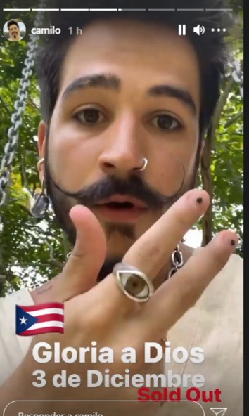 "Toda la vida he soñado con ir a cantar con ustedes, desde que empecé a colaborar con artistas boricuas, con Pedro Capó en 'Tutu', con Kany (García) en 'Titanic', con Rauw Alejandro en 'Tattoo', con Ozuna en 'Despeinada', y con tantos más. Soñé con poder ir a cantar con ustedes y llegó el momento, entonces sacamos la fecha, 3 de diciembre y en apenas minutos se agotaron todas las entradas. Sold out! Y eso a mí me hace muy feliz", aseguró Camilo a través de sus historias de Instagram.