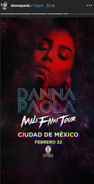 Danna Paola anunció que, como parte de su gira Mala Fama, ofrecerá diferentes conciertos en México, entre los que se encuentra uno en la ciudad el 22 de febrero en el Teatro Metropólitan. La intérprete de “Oye Pablo” compartió la noticia mediante sus historias de Instagram.