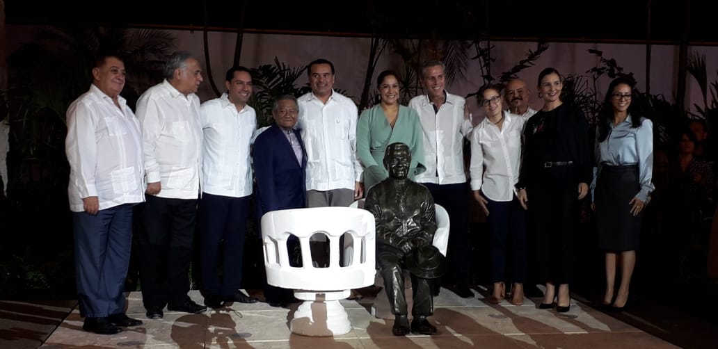 Llegó vistiendo un traje azul y acompañado de su esposa; a su lado estuvieron el gobernador del Estado de Yucatán, Mauricio Vila Dosal y el secretario de Turismo federal, Miguel Torruco Marqués, además acudieron políticos y empresarios locales.