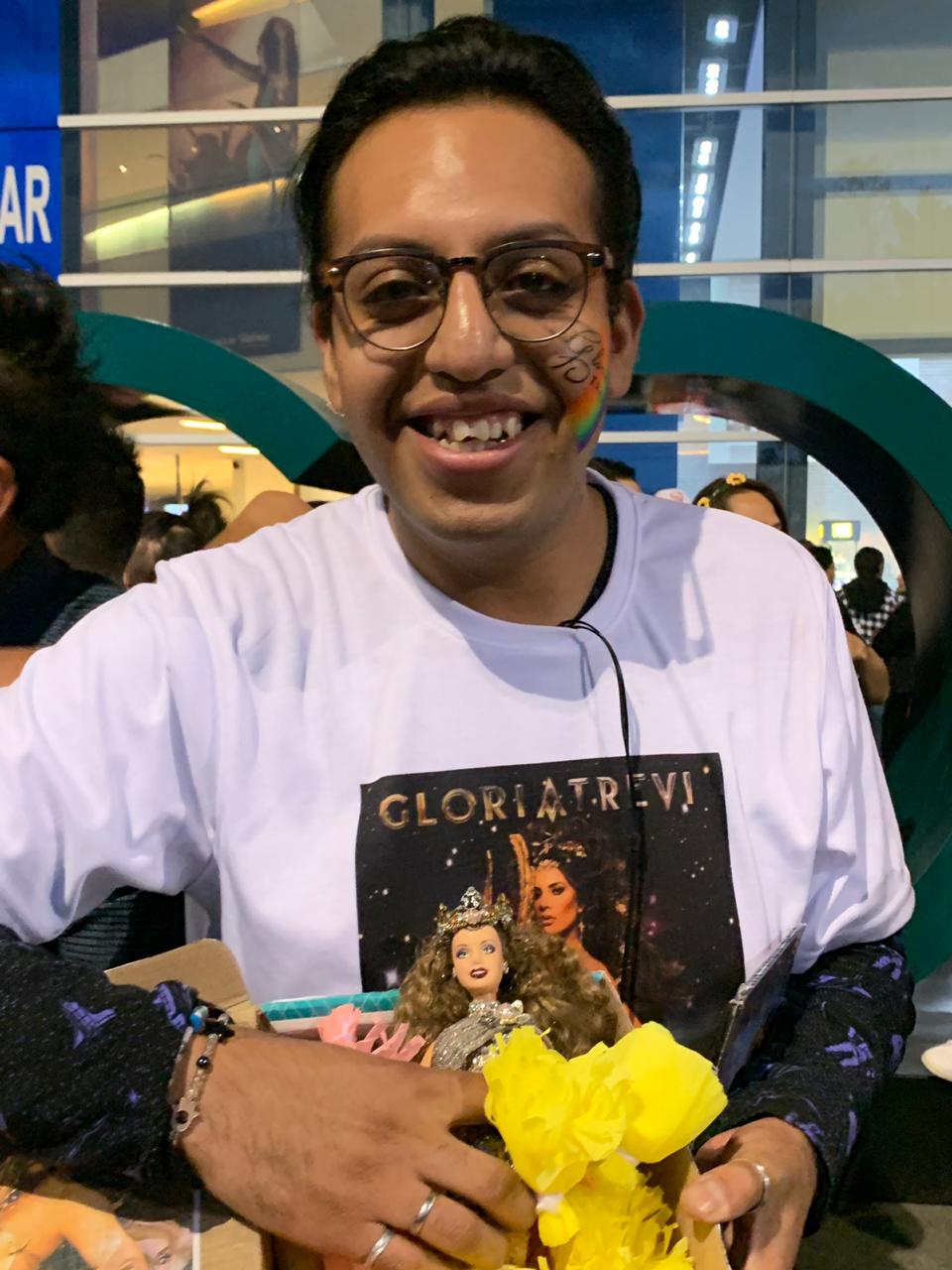 La gente sabe que a un concierto de La Trevi se viene a soltarse el pelo y, quienes llegan en transporte comienzan la fiesta apenas salen del Metro, para hacer de la caótica Avenida de las Granjas una especie de desfile por el que caminan principalmente hombres gays, mujeres, uno que otro travesti y también niños y niñas. Ya frente a la Arena, la gente se aglomeran, el club de fans Dreams of Gloria organiza concursos de canto y los participantes no dudan en llevar su imitación de la cantante hasta arrastrarse por el suelo o desgañitarse la garganta, como bien lo han aprendido de su ídolo, que por cierto este año cumple 30 años de trayectoria musical como solista. Del Estado de México, Joel es el gran ganador del concurso; tras cumplir el reto de hablar durante tres minutos sobre datos de su gran artista, el chico de 25 años se lleva una muñeca Barbie adaptada para hacerla lucir como La Trevi. “Llevo 17 años siendo fan”, cuenta a MILENIO. “Sin sus canciones no podría expresarme, ya que a veces ‘En medio de la tempestad’ encuentro fuerzas en ellas”.