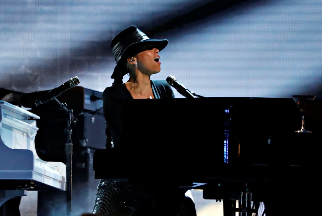 La anfitriona de los premios Grammy deleitó al público con su poderosa voz con temas como "Killing Me Softly", de The Fugees; "Unforgettable", de Nat King Cole; y su clásica "Empire State of Mind".
