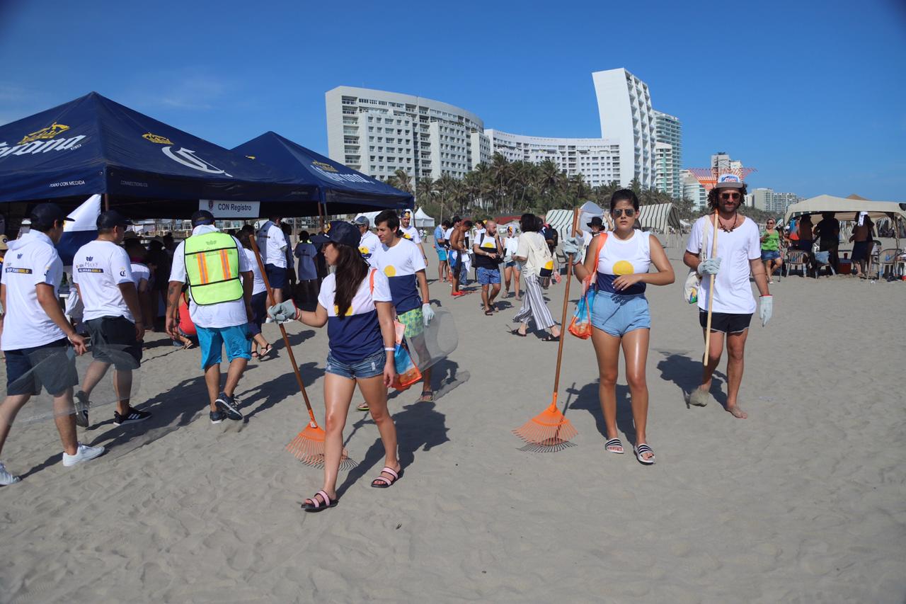 En punto de las cinco de la tarde, jóvenes y adultos se reunieron bajo una carpa para registrase, recibir una playera y un paliacate, tomar sus herramientas y recorrer la arena recolectando plásticos, vidrios, papel, colillas de cigarro y demás desechos.