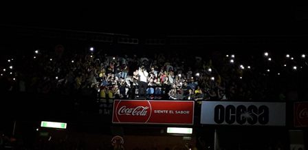El vocalista, portando pasamontañas y sudadera blanca se lanzó de espaldas desde una plataforma, para "teletransportarse" y aparecer en las últimas filas de las gradas; ahí se quitó la máscara para demostrar que era él, el truco hizo que un grito retumbara en el recinto.