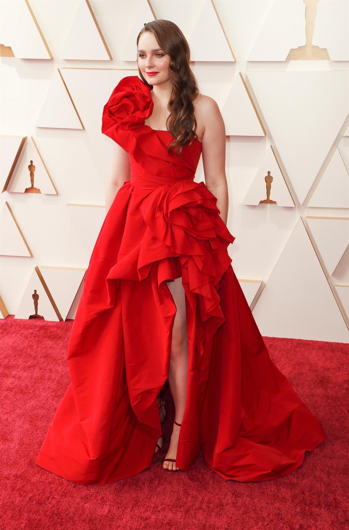 La actriz, nominada a Mejor actriz de reparto por su papel en 'Amor sin barreras', lució un espectacular vestido color carmesí que acompañó con unos brillantes.