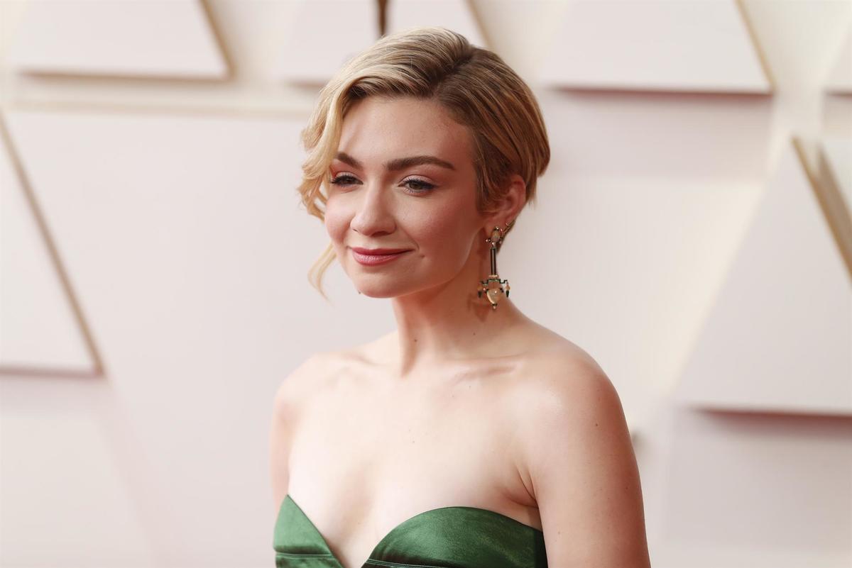 La actriz de 'La peor persona del mundo' luce atrevido look al estilo charlestón en los Oscar 2022.
