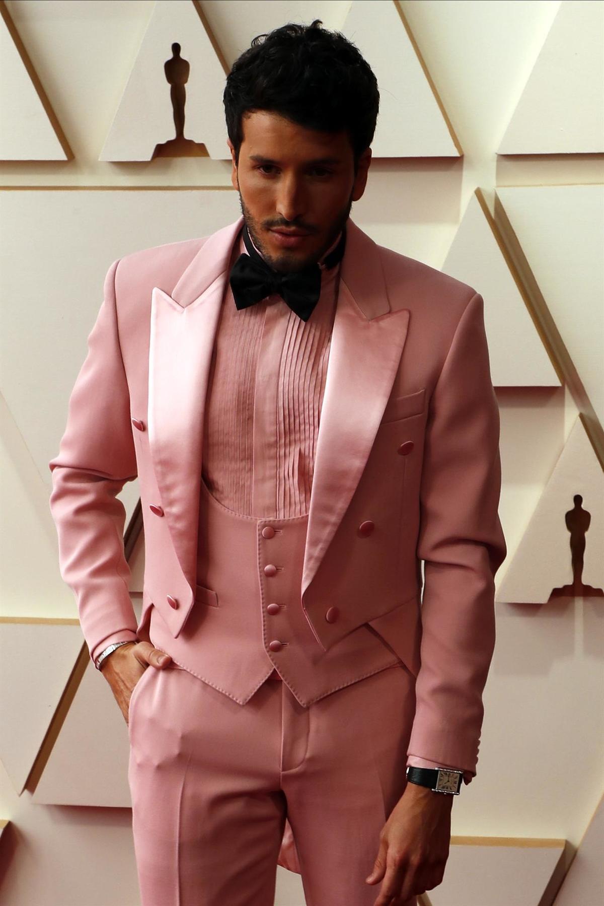El colombiano llegó a los Oscar con un look totalmente rosa. Esta noche se presentará en el escenario para interpretar 'Dos oruguitas', tema de 'Encanto' nominado a Mejor canción.