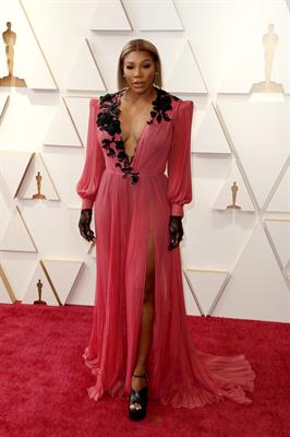 La tenista asistió a la gala con un vestido rosa con flores alrededor de un escote en 'V'. Además de guantes y tacones negros. Sin duda, no fue la mejor decisión para la deportista, cuya vida fue retratada en 'King Richard'.