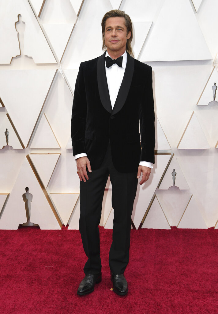 Con su estilo característico, Brad Pitt arribó con un esmoquin negro a la alfombra roja de los Oscar 2020, donde buscará conseguir su segundo Premio de la Academia, y primero en una categoría de actuación, por su papel en Érase una vez... en Hollywood (One Upon a Time... in Hollywood).