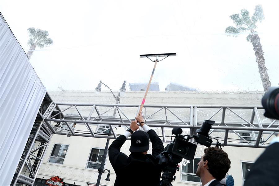 Con todos los medios de comunicación ya preparados y la alfombra roja a punto de empezar, ha comenzado una lluvia intensa en Los Ángeles que se ha dejado notar en el Paseo de la Fama de Hollywood.