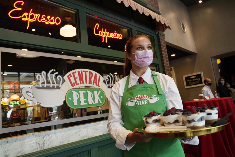 Central Perk ofrece un menú inspirado en delicatessen de Nueva York que incluye una mezcla especial de café Central Perk, trozos de pizza, carne en conserva derretida y sándwiches fríos.