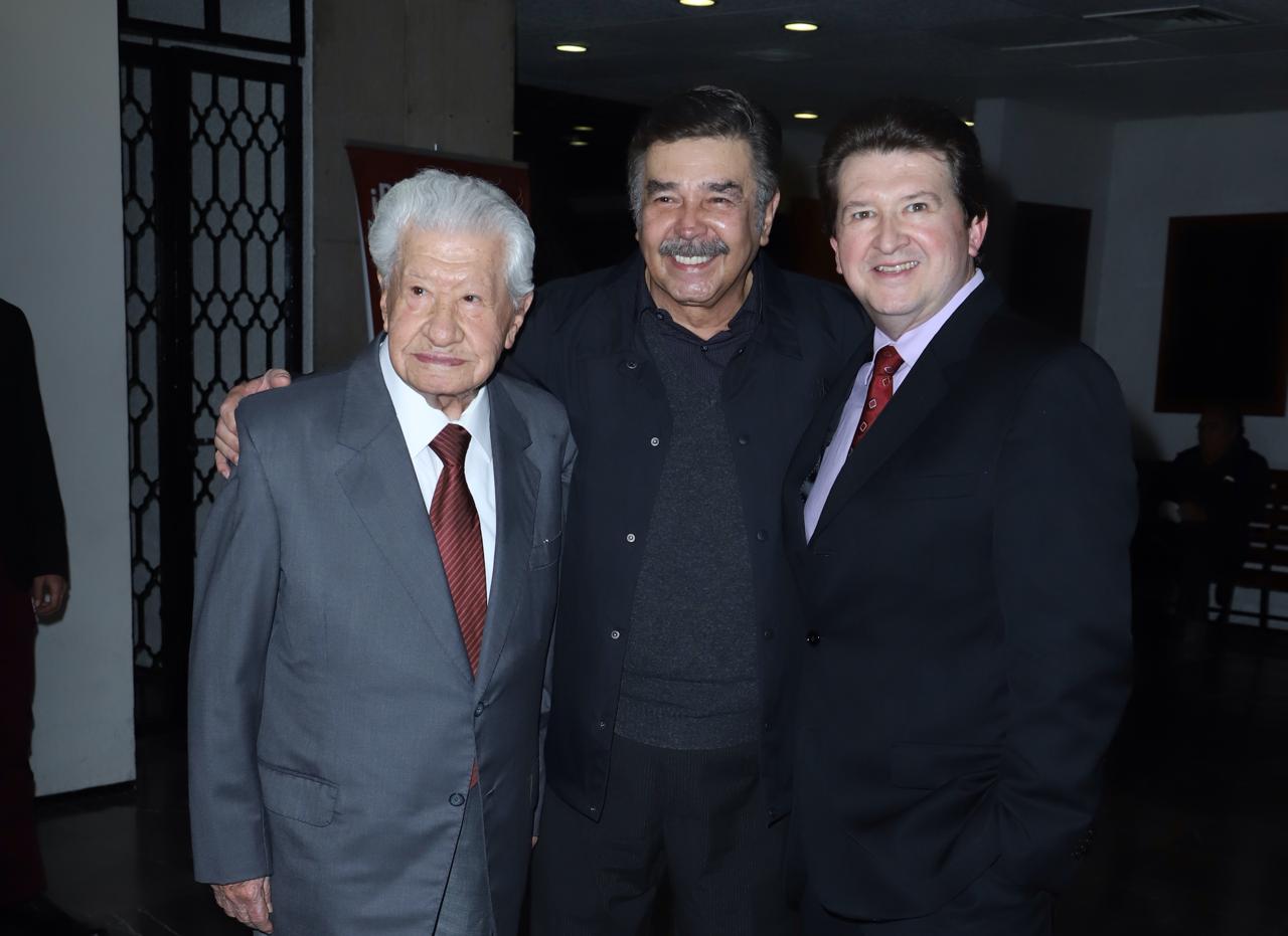 López Tarso mencionó entre bromas que aunque tiene 71 en el escenario y desde entonces no se ha bajado, esta vez prefería dar las palabras desde su lugar; así, en un pasillo y entre los asistentes, aplaudió el trabajo del actor y dramaturgo.