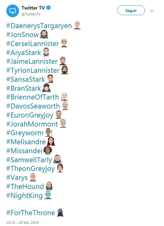 HBO reveló imágenes promocionales de la última temporada de Game Of Thronesy anunció que los hashtags relacionados con la serie y sus personajes incluirán emojis.