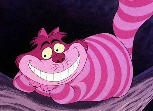 La versión de este felino que más ha sobresalido es la que Disney llevó a la pantalla en 1951, presentándolo como un gato de un intenso color rosa con rayas moradas y una sonrisa muy amplía. Además de sus conversaciones filosóficas, el Gato Risón tiene la capacidad de aparecer en cualquier sitio.