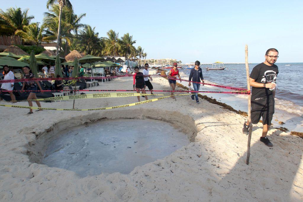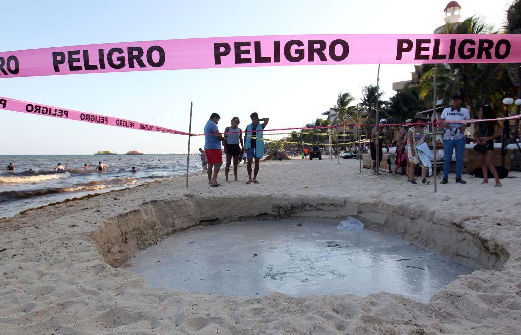 Un socavón de cinco metros de ancho y tres de profundidad se abrió a escasos metros del mar en Playa del Carmen, municipio de Solidaridad, en Quintana Roo, informaron las autoridades locales.
