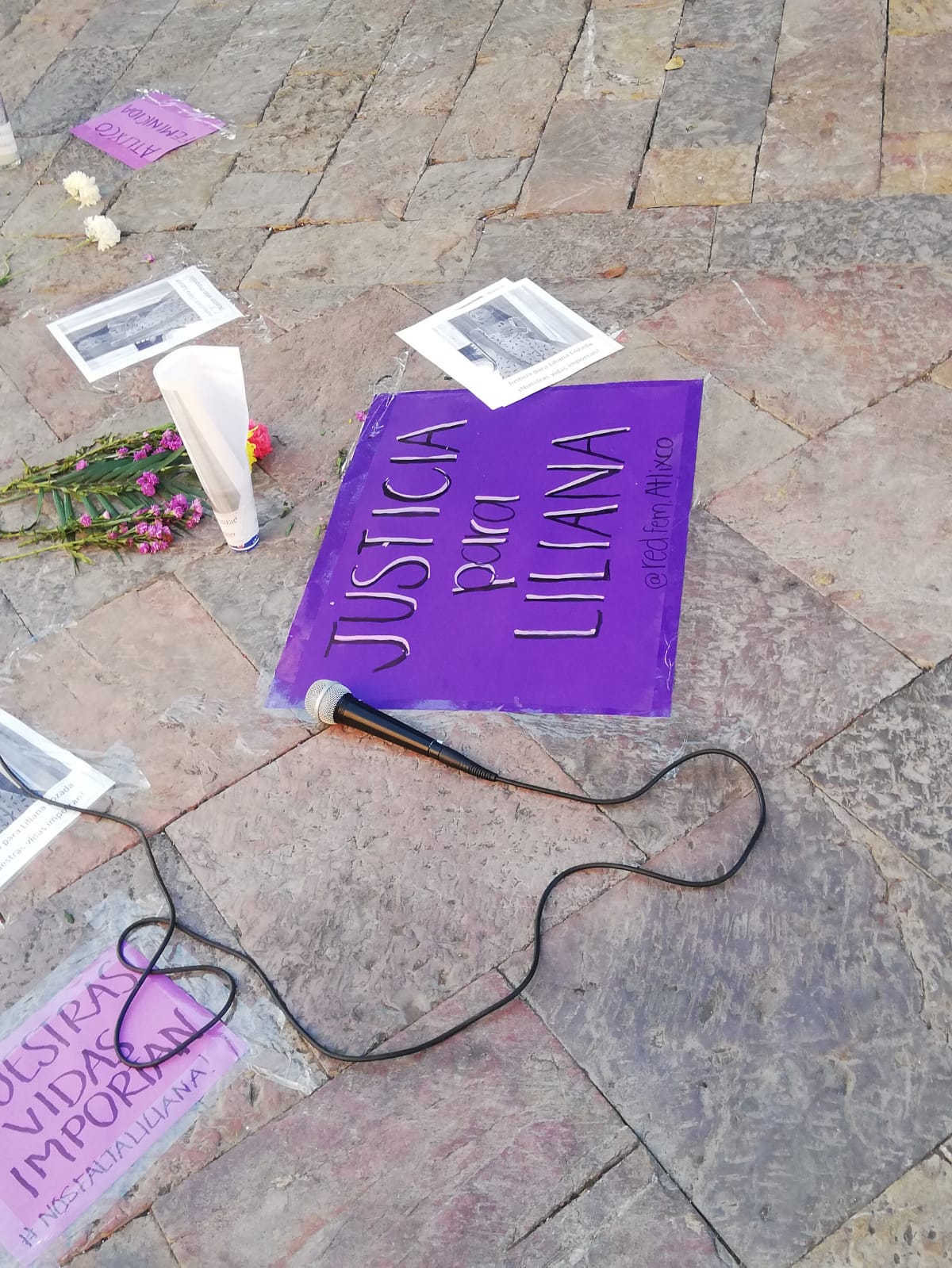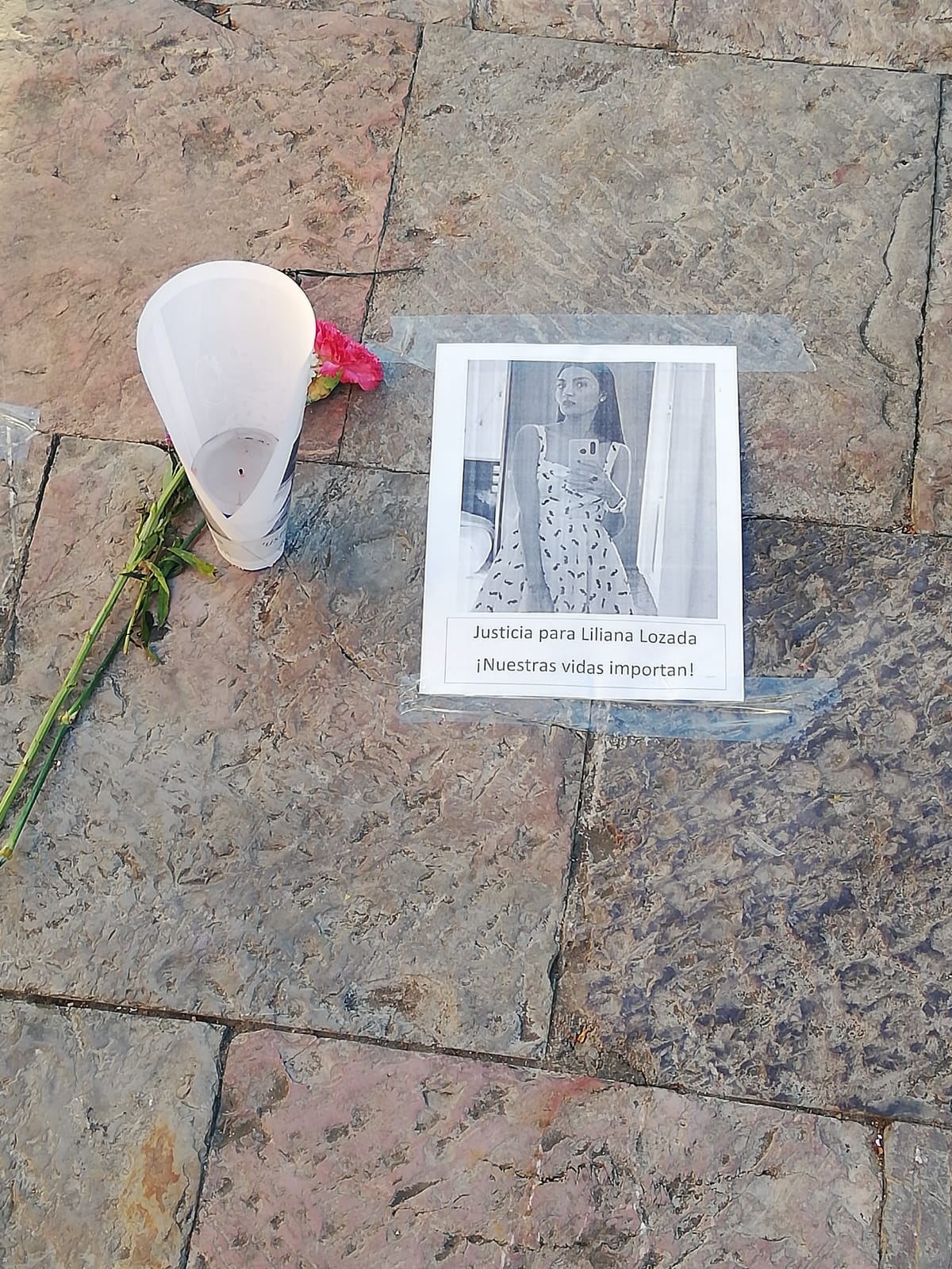 Por su parte, la Red Feminista de Atlixco realizó un circulo con flores, veladoras y fotografías de Liliana como muestra de sororidad frente a las instalaciones de palacio municipal.