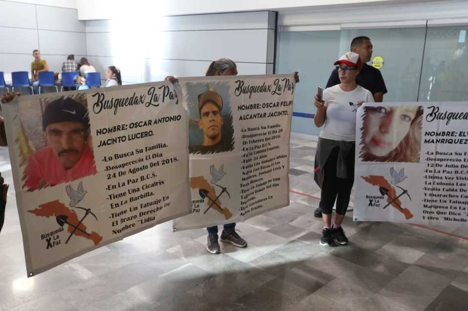 El presidente Andrés Manuel López Obrador, llegó esta tarde al aeropuerto de La Paz, Baja California, en medio de protestas de familiares de personas desaparecidas, quienes acusan que las autoridades estatales y federales no les han ofrecido alguna respuesta y sólo les "quieren endulzar el oído”