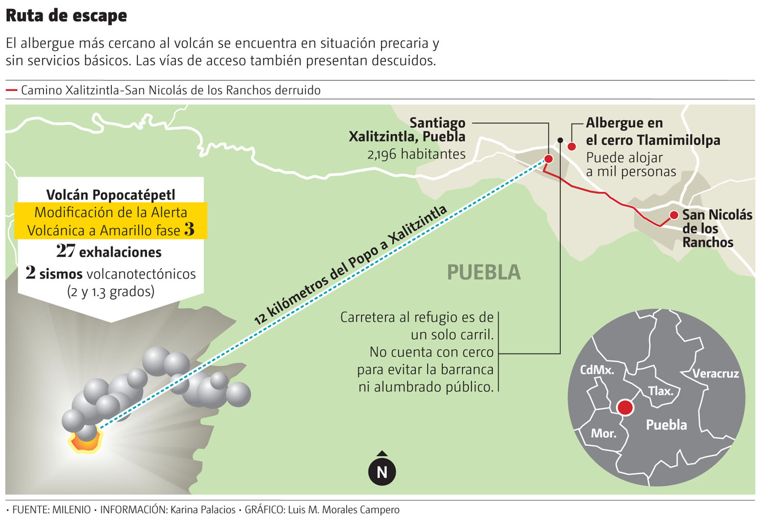 La Secretaría General del Gobierno de Puebla informó que habilitó 205 refugios temporales para albergar a los habitantes de las comunidades cercanas al volcán en caso de que el Semáforo de Alerta Volcánica se eleve a Roja Fase 1 o 2.