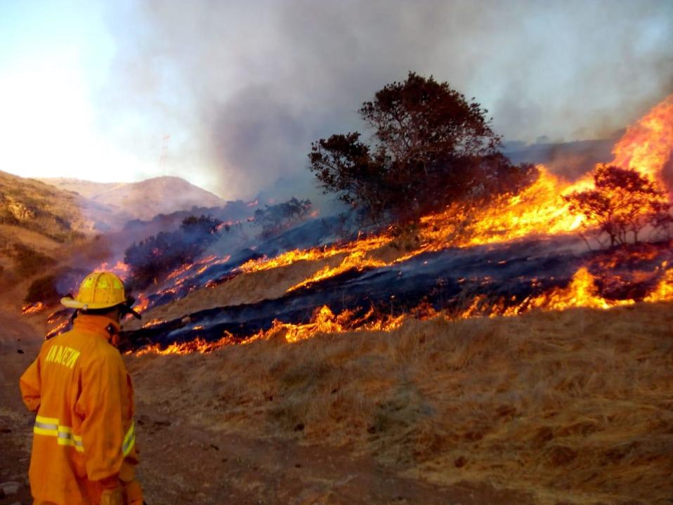 Personal de Comisión Nacional Forestal (Conafor) también auxilió a los bomberos, sin embargo, las zonas afectadas aumentaron debido a la condición Santa Ana (vientos extremadamente secos).