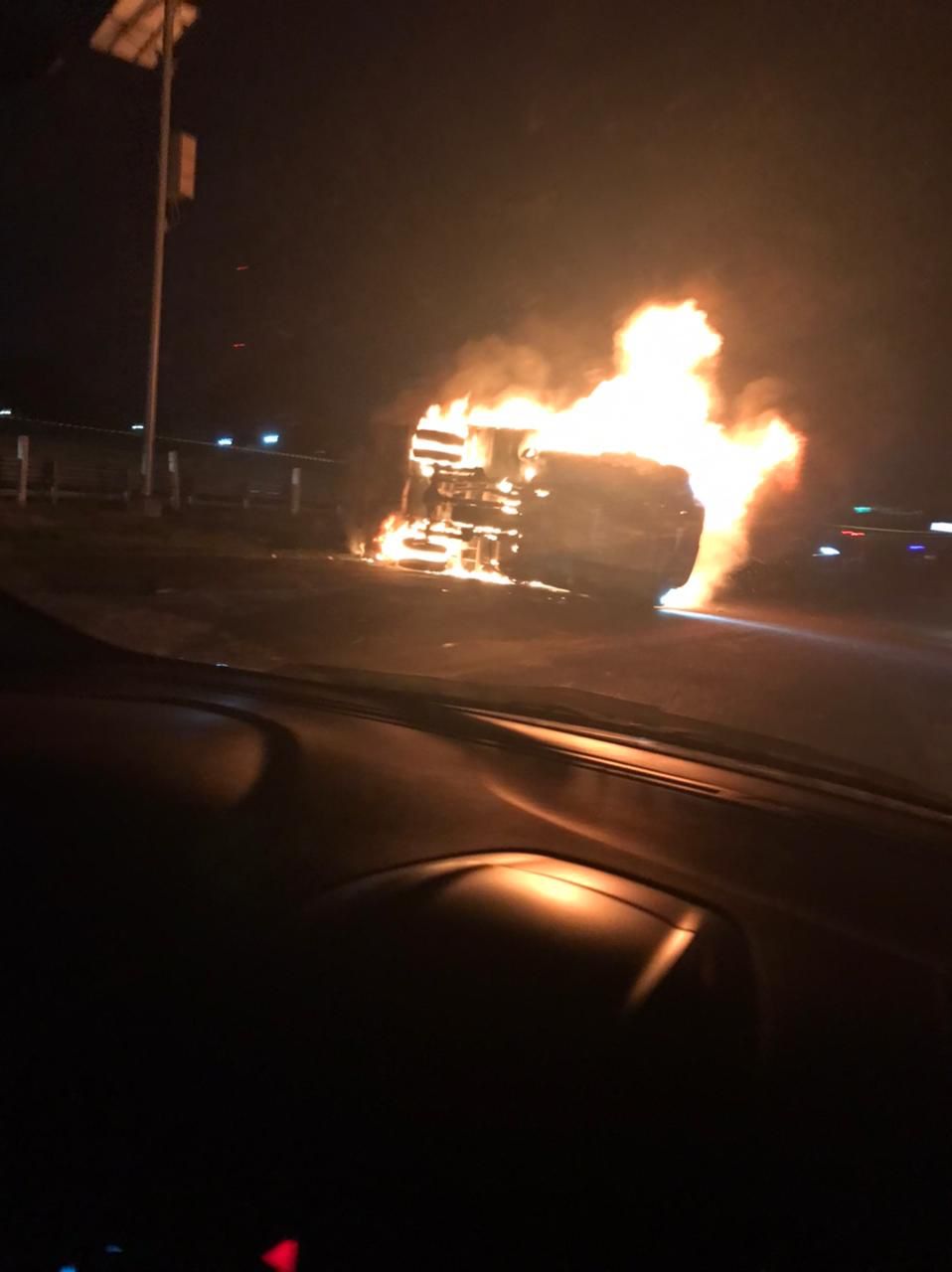 Tres personas lesionadas fue el saldo después de la volcadura e incendio de un camión de carga en los carriles laterales de la carretera México - Toluca a la altura de Ocoyoacac.
